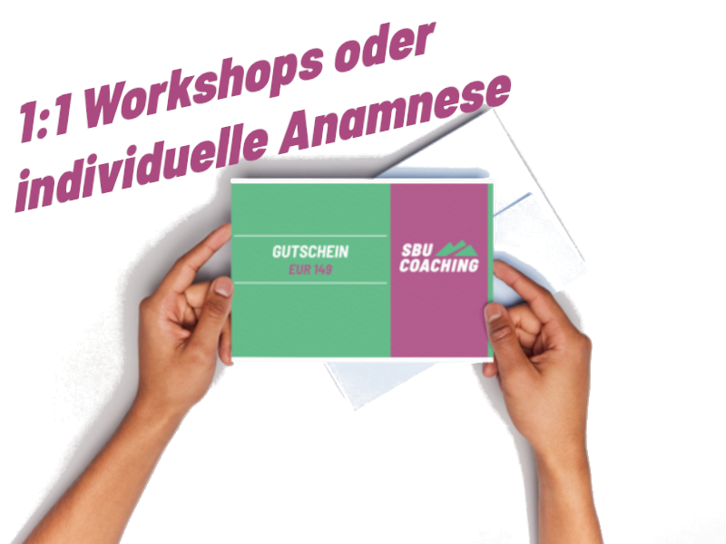 Das ideale Geschenk. Gutscheine bei SBU Coaching. Zum Beispiel für eine individuelle Anamnese oder 1:1 Workshops als Vorbereitung auf das nächste Event.